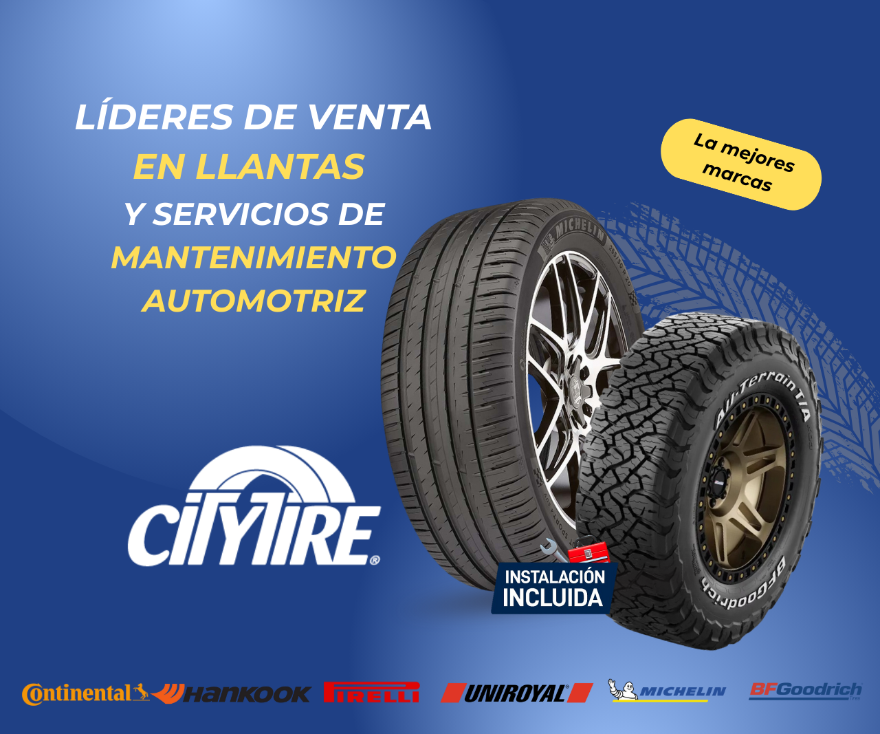 En City Tire te ofrecemos llantas de las mejores marcas y asesoría personalizada para elegir la ideal según tu vehículo, manejo y presupuesto.
